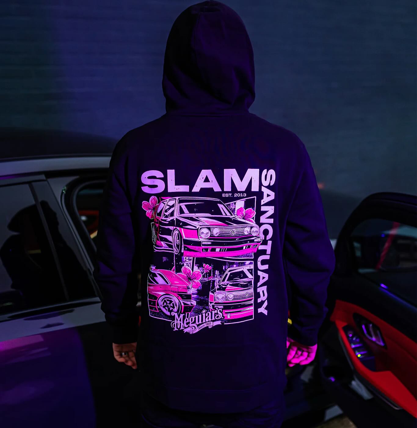 This limited-edition collection features a premium tee and heavyweight hoodie, both designed to honour Meguiar’s iconic Rocket Bunny Mk2 Golf, a build that became an instant legend within the UK car scene.
