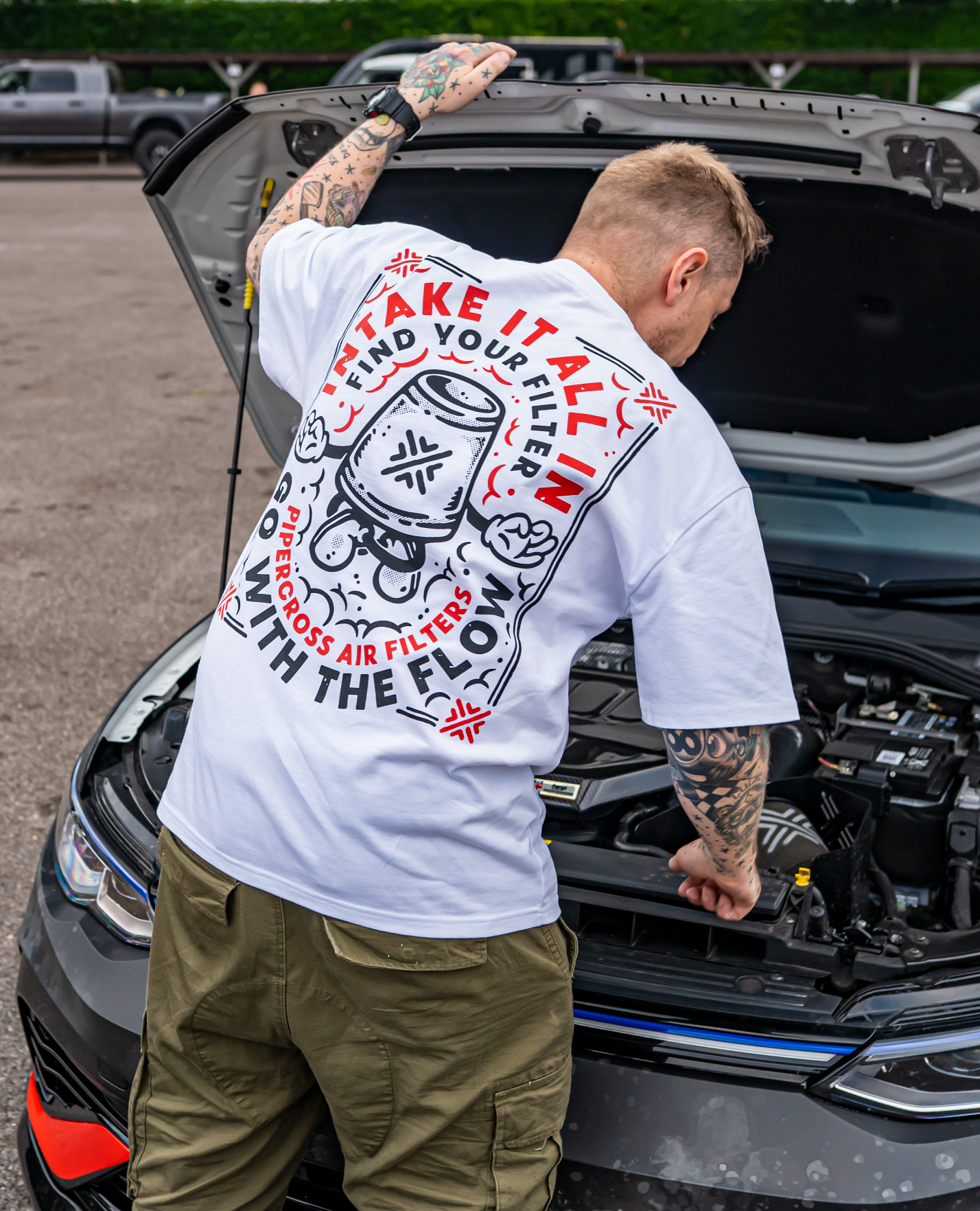 This unique tee features the universally recognised Pipercross cone filter in the ‘sitting lotus’ yoga pose, tributing balance, flow, and the pursuit of performance.